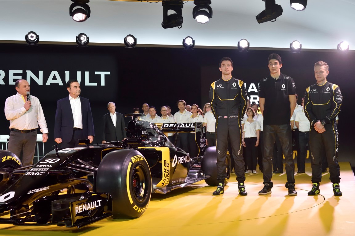 Μια σειρά βασικών προσθηκών έγιναν στην ομάδα της F1. Ο Bob Bell διορίζεται ως F1 Chief Technical Officer. Ο Νικ Τσέστερ, Τεχνικός Διευθυντής Σασί και ο Rémi Taffin ως Τεχνικός Διευθυντής του κινητήρα. Οι Kevin Magnussen και Jolyon Palmer επιβεβαιώνονται ως οδηγοί της Renault Sport Formula One Team, καθώς και θα υποστηρίζονται από τον Esteban Ocón, ως τρίτο και αναπληρωματικό πιλότο.
